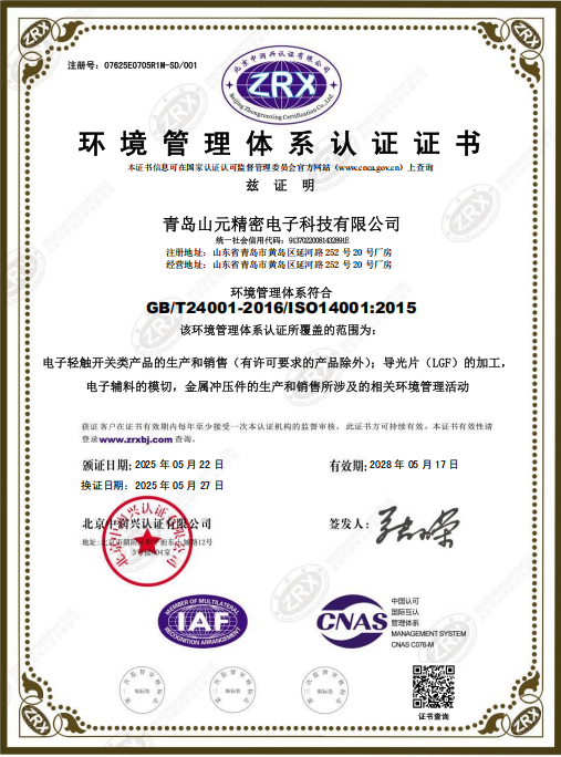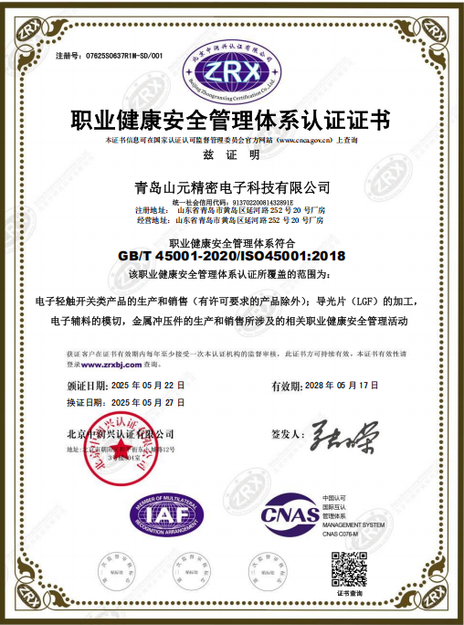 主營業務手機,遙控器彈片開關、導光片LGF、FPC、模切品等。青島廠房面積3500多平方米,為客戶提供了優質的服務。